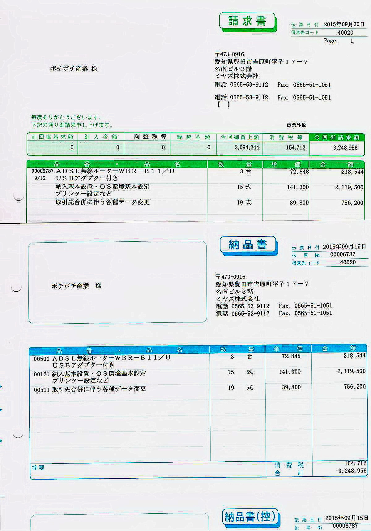 得意先・商品などのデーター登録はお客さまにてお願い致します。